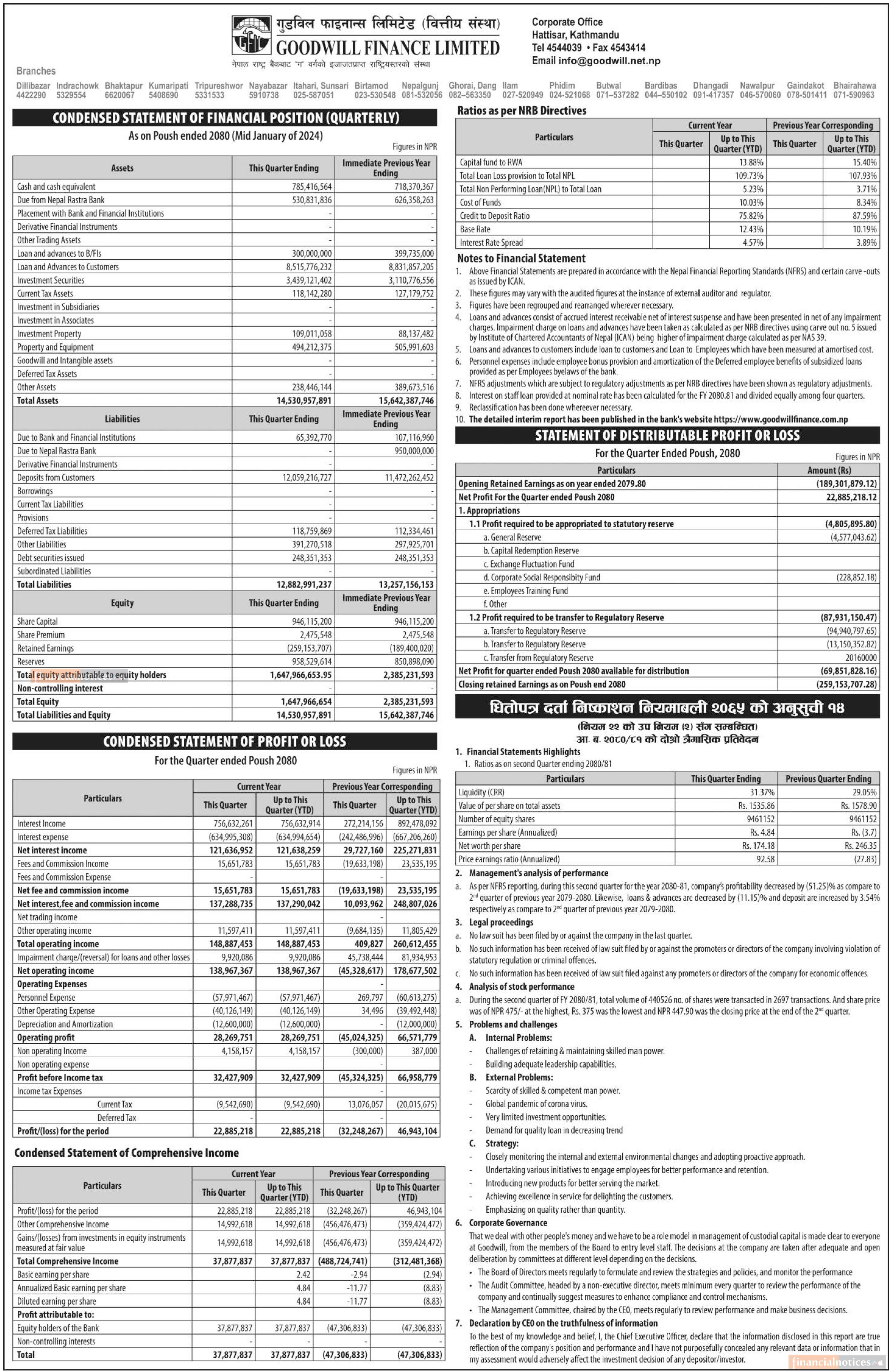 गुडविल फाइनान्सको खुद नाफा २ करोड २८ लाख ८५ हजार रुपैयाँ