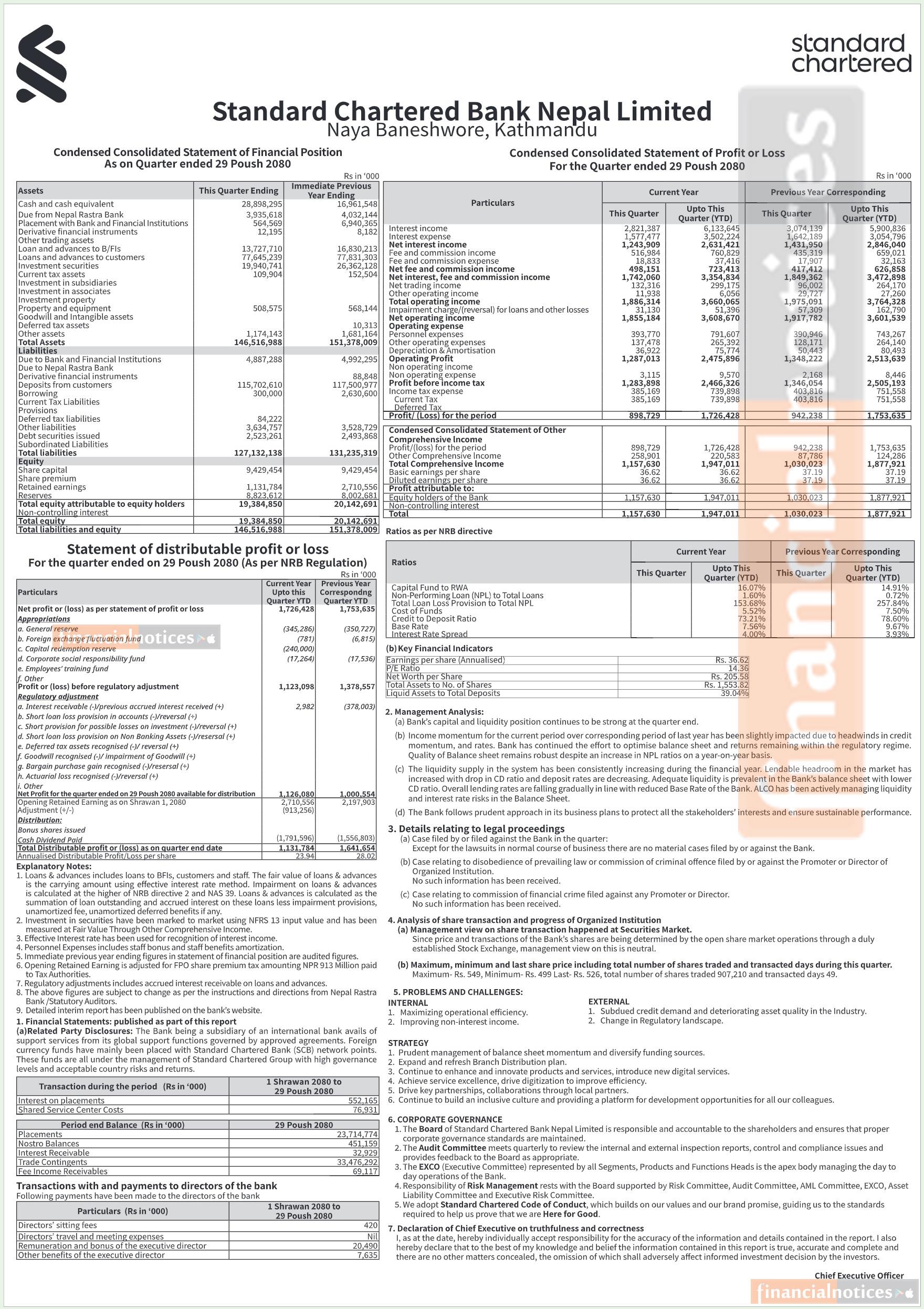 स्टान्डर्ड चार्टर्ड बैंकको दोस्रो त्रैमासमा खुद नाफा १ अर्ब ७२ करोड ६४ लाख रुपैयाँ - Quarterly Repor