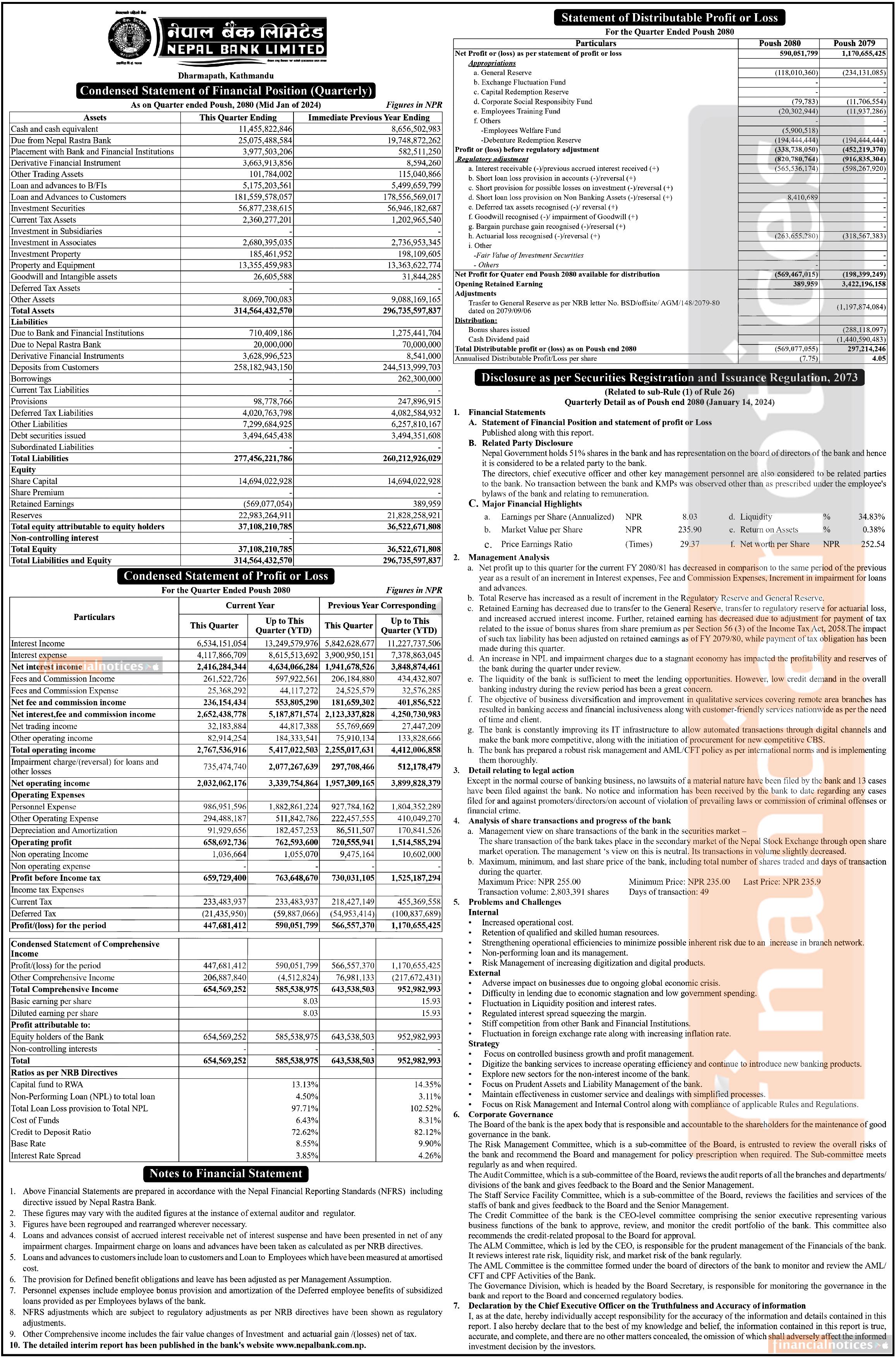 नेपाल बैंकको खुद नाफा ५९ करोड ५१ हजार रुपैयाँ - Q2 Report -