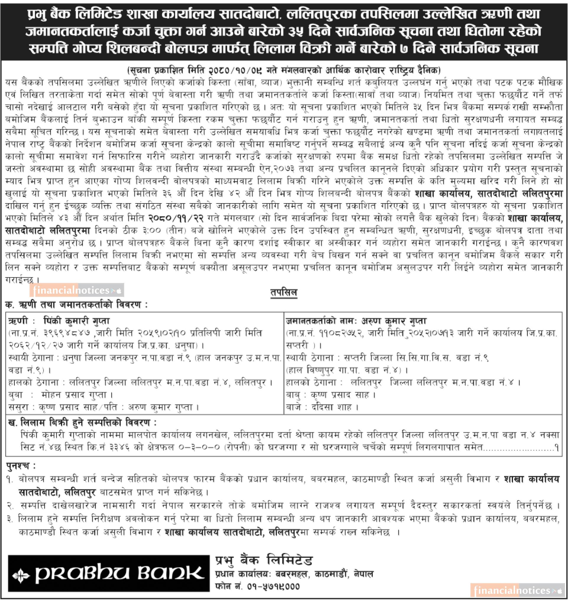 Kumari Bank Auction Notice for Non-Banking Assets at Mahendranagar, Kanchanpur -