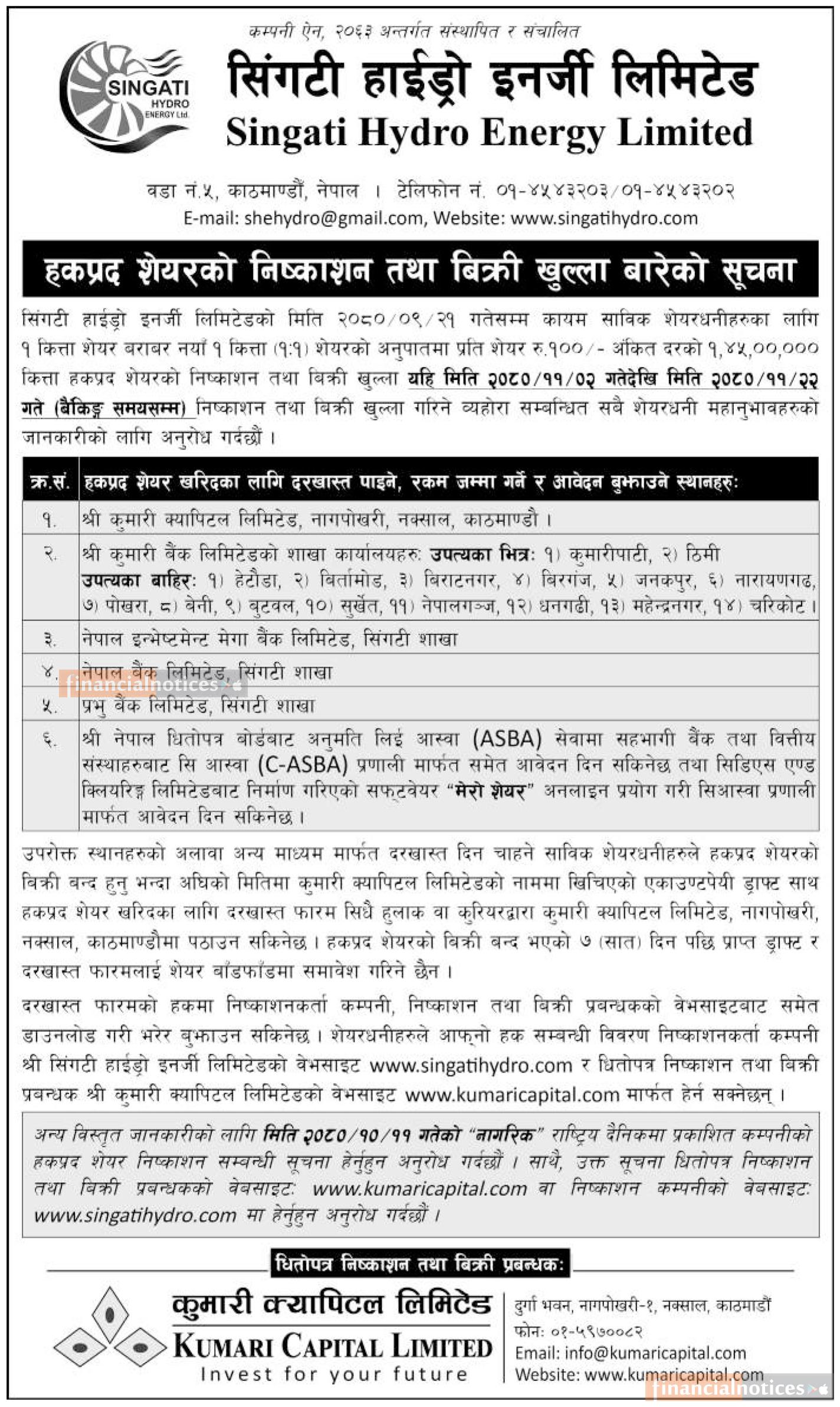 हकप्रद शेयर निष्काशन तथा बिक्री खुल्ला सम्बन्धी सूचना