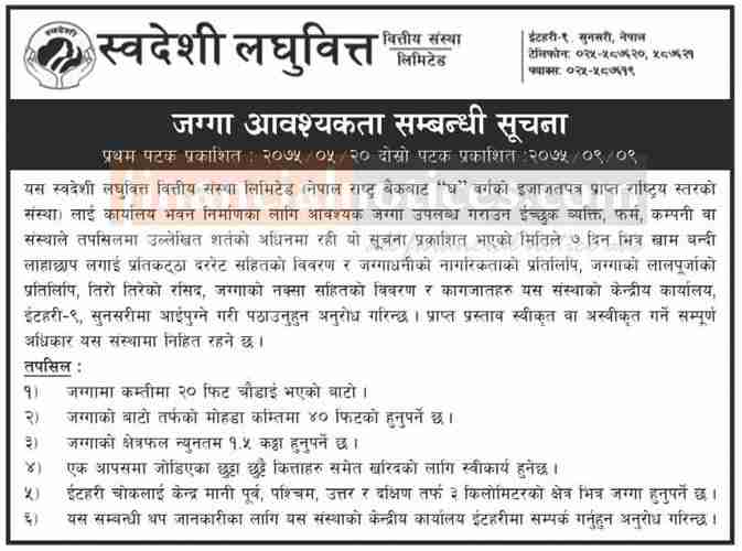 जग्गा आवश्यकता सम्बन्धी सूचना