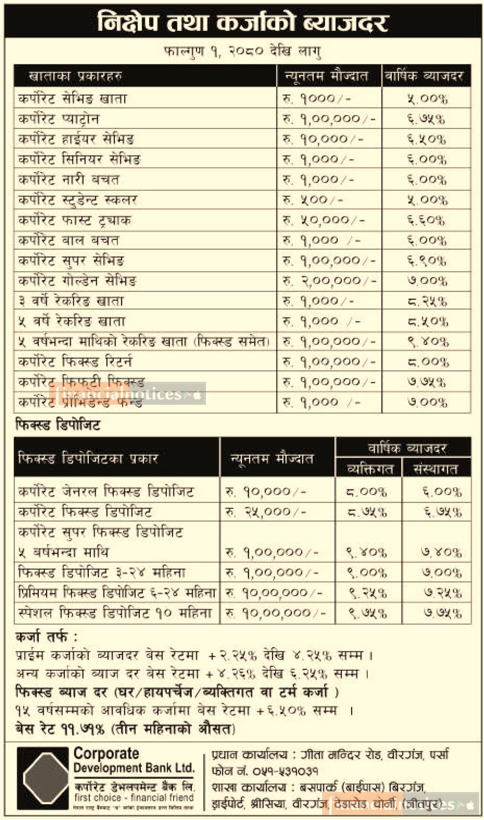 निक्षेप तथा कर्जाको नयाँ ब्याजदर सार्वजनिक -