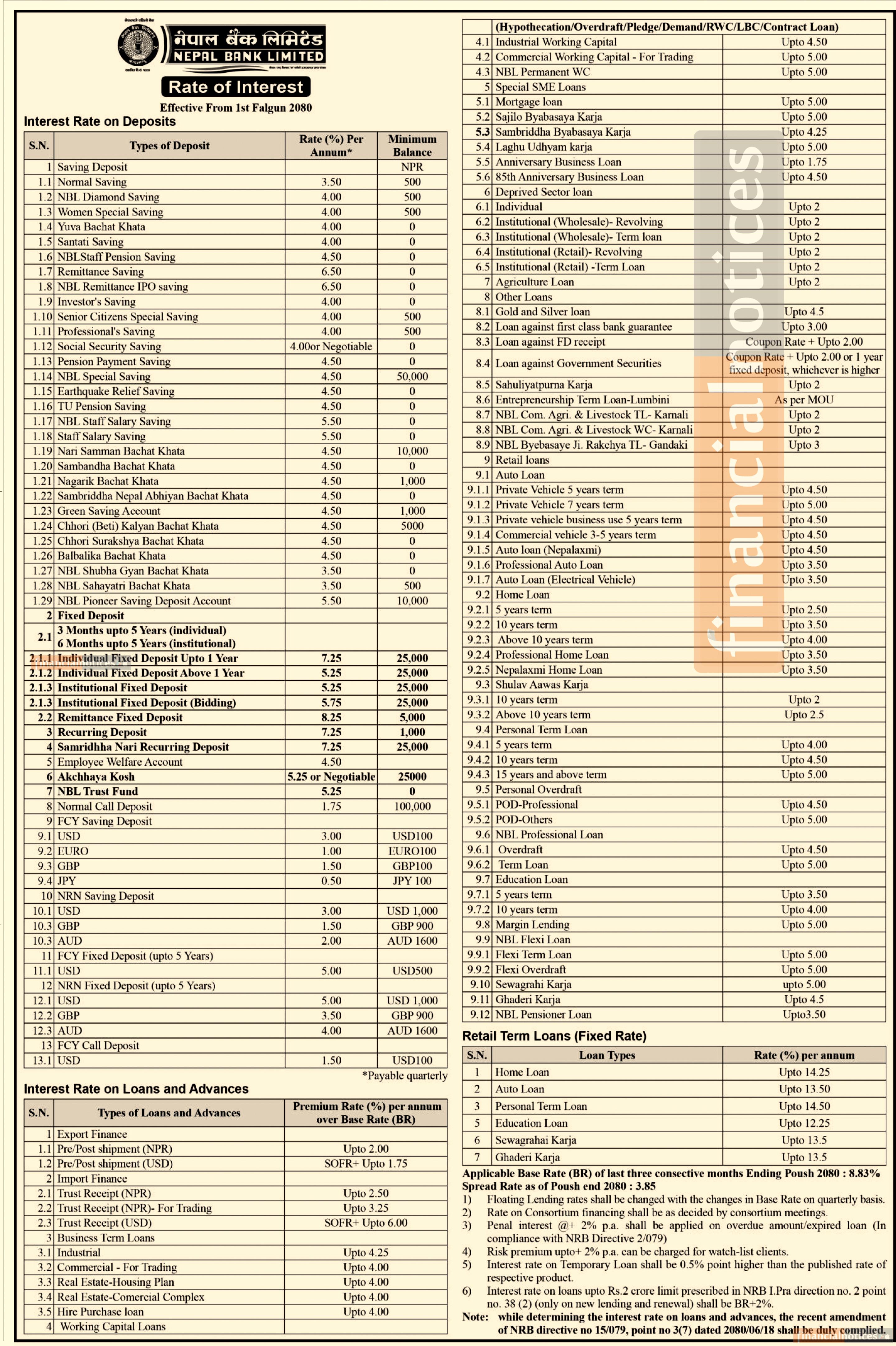 नेपाल बैंकको फागुन १ गतेदेखि लागु हुने नयाँ ब्याजदर तालिका सार्वजनिक - Interest Rates -
