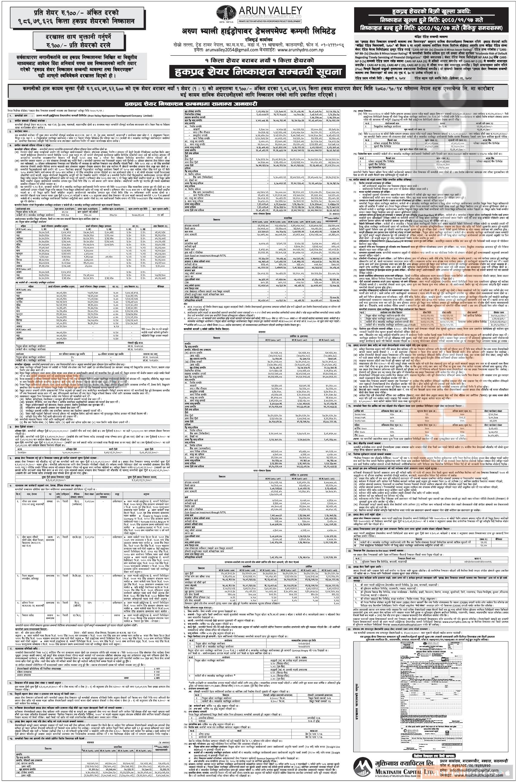 अरुण भ्याली हाइड्रोपावरले फागुन १७ गतेदेखि १०० प्रतिशत हकप्रद सेयर जारी गर्ने बारे सूचना
