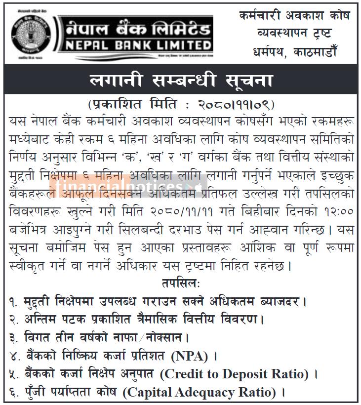 नेपाल बैंकको लगानी सम्बन्धी जरुरी सूचना