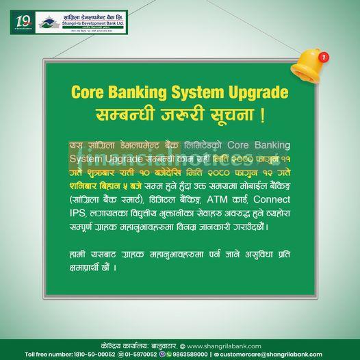 Core Banking System Upgrade सम्बन्धी जरुरी सूचना -