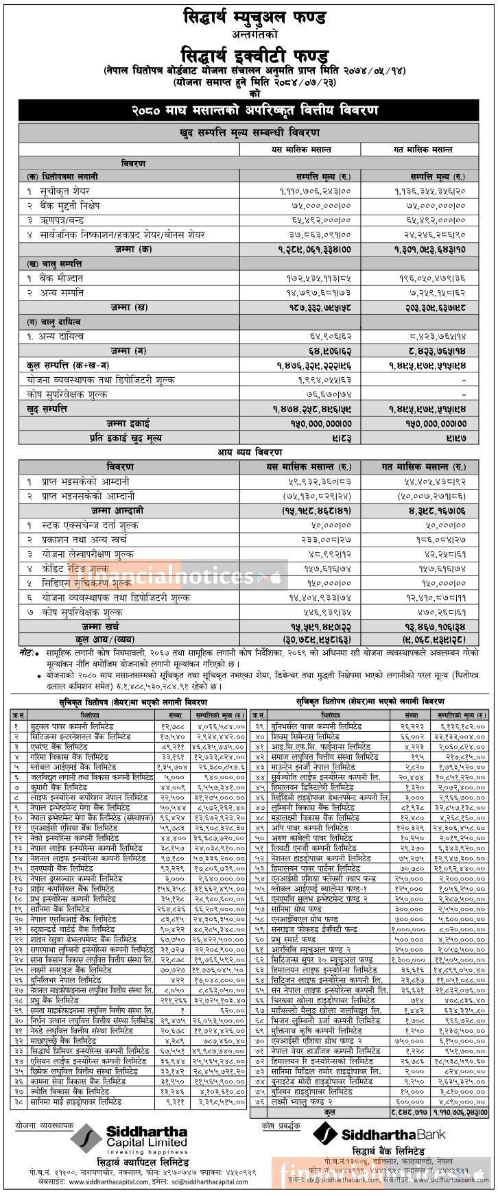 Siddhartha Capital has published Siddhartha Equity Fund Net Asset Value till Magh, 2080
