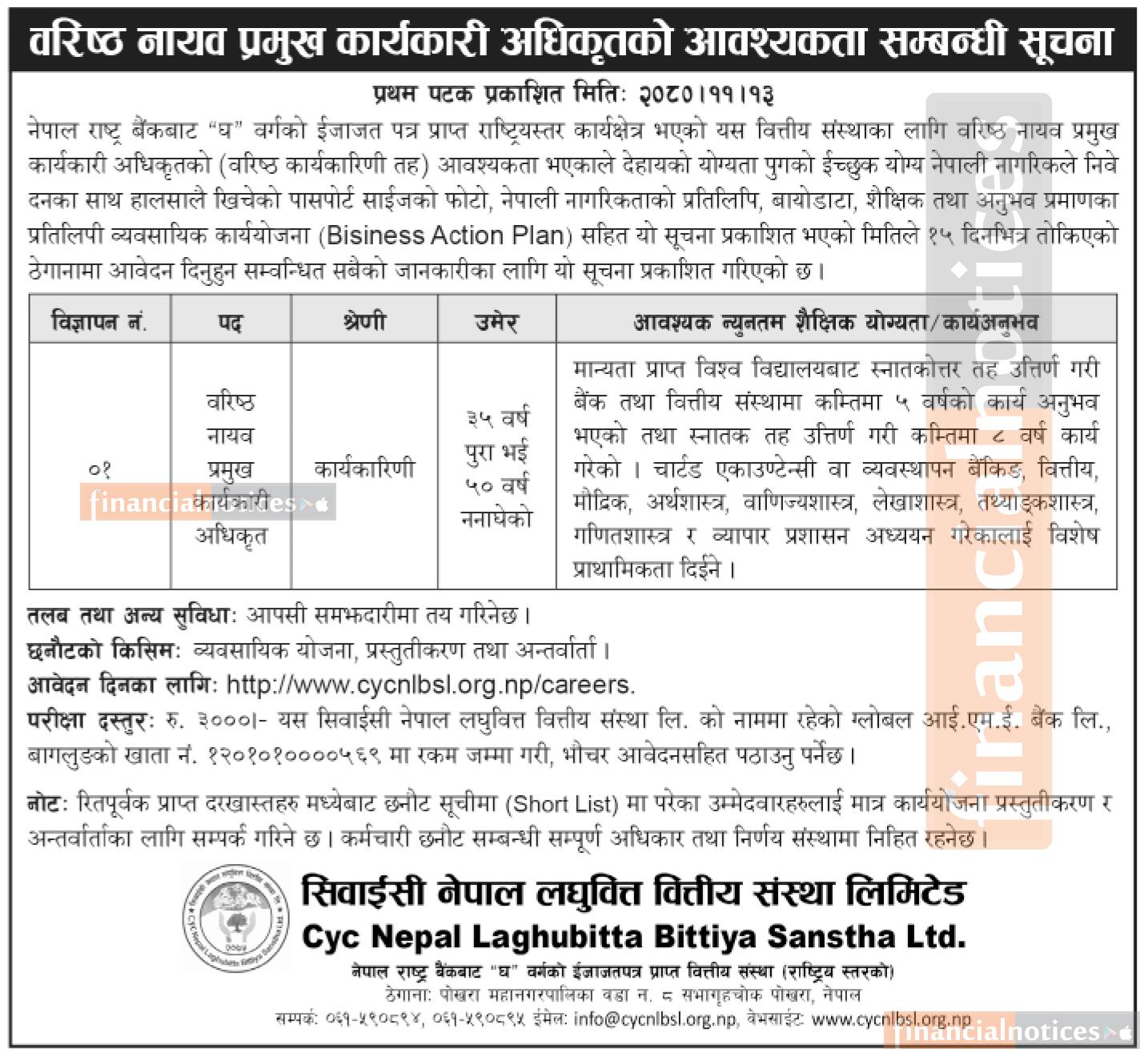 सिवाईसी नेपाल लघुवित्तमा कर्मचारी आवश्यकता सम्बन्धी सूचना