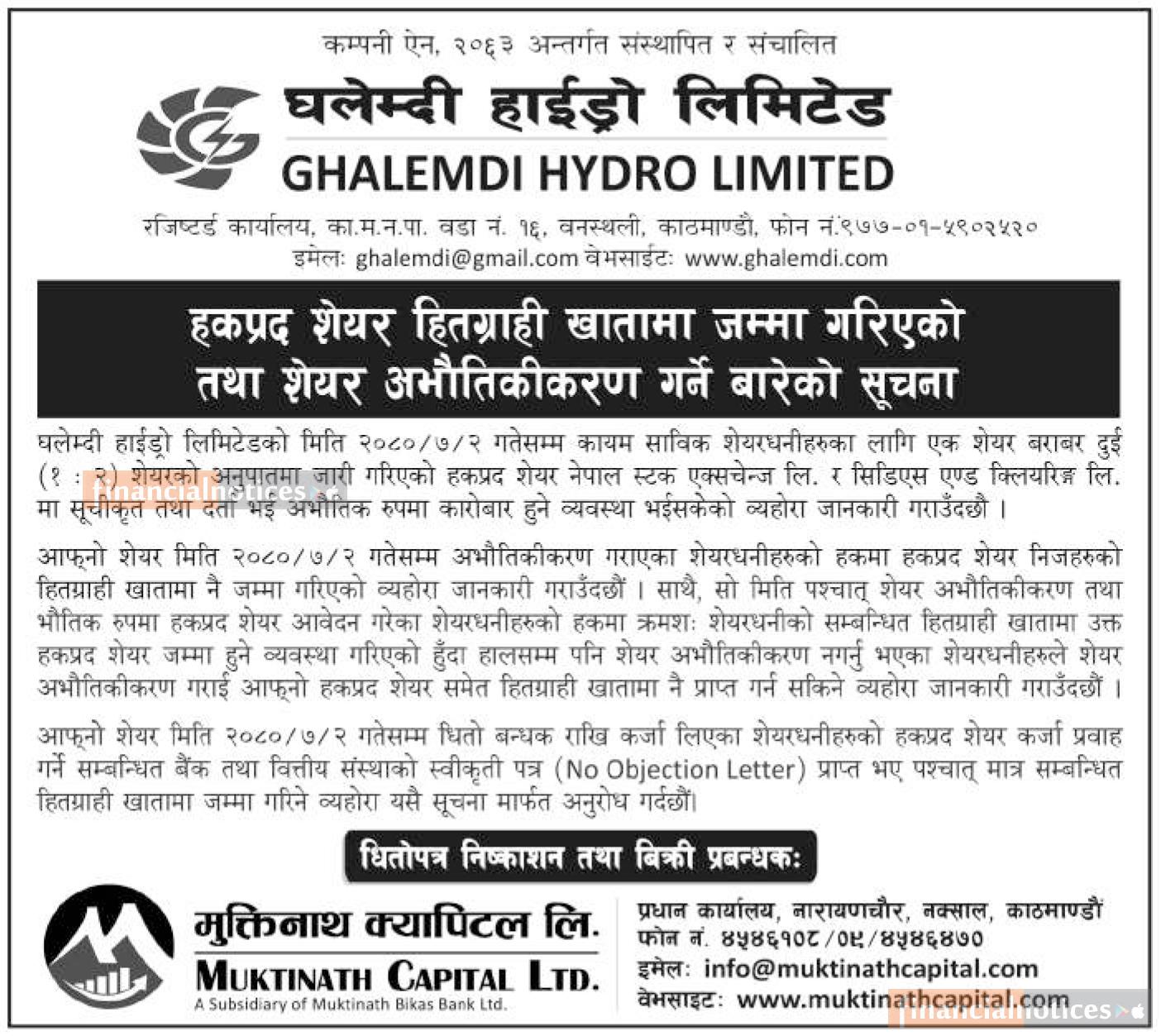 हकप्रद शेयर हितग्राही खातामा जम्मा तथा शेयर अभौतिकीकरण सम्बन्धी सूचना