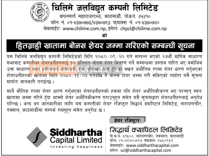 हितग्राही खातामा बोनश शेयर जम्मा गरिएको सम्बन्धी सूचना