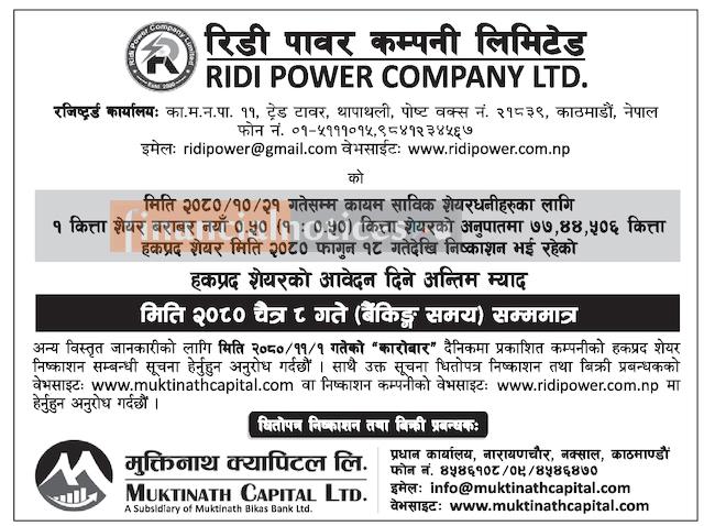 हकप्रद शेयरको आवेदन दिने अन्तिम म्यादबारे सूचना -