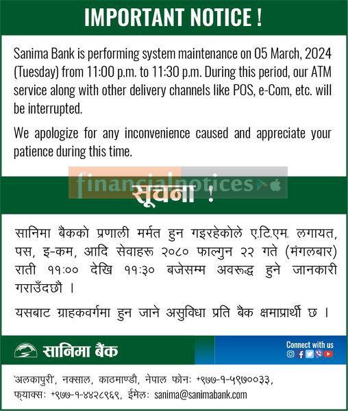 सानिमा बैंकका ग्राहकहरुलाई अत्यन्त जरुरी सूचना -