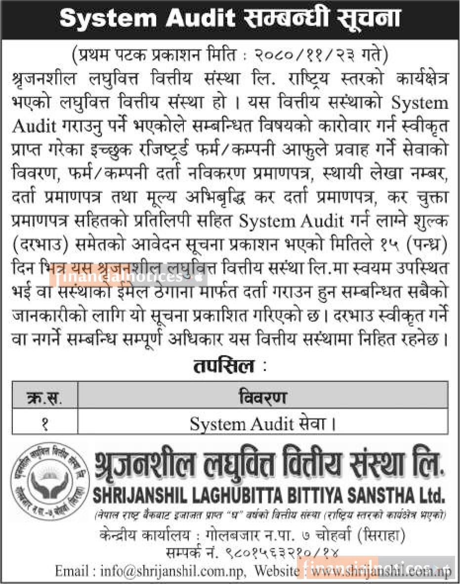 System Audit सम्बन्धी सूचना