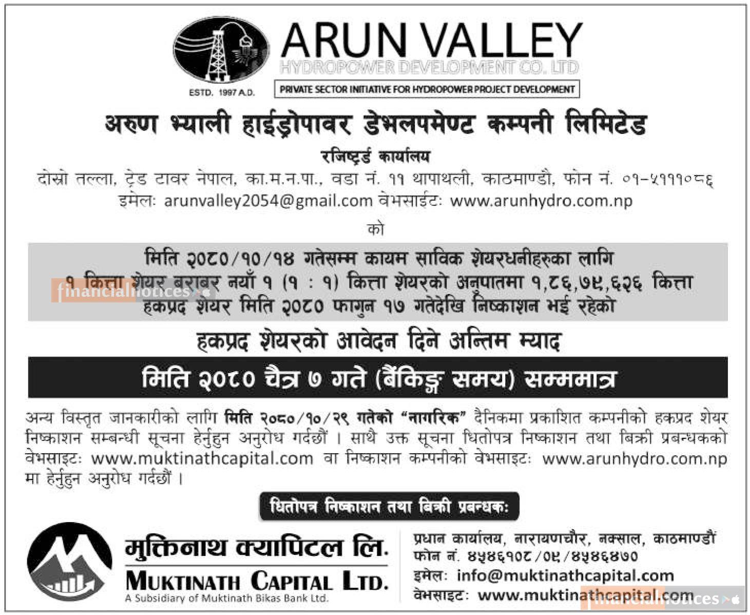 अरुण भ्याली हाईड्रोको हकप्रद शेयर सम्बन्धी सूचना