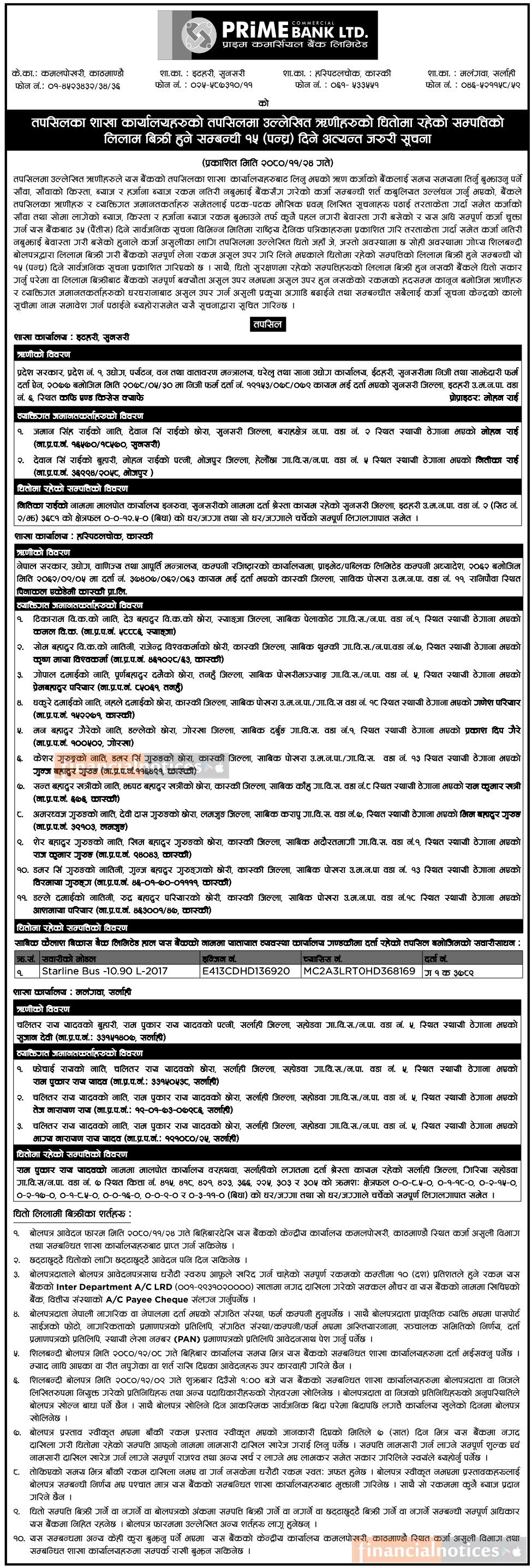 शाखा कार्यालयहरुको धितोमा रहेको सम्पत्तिको लिलाम बिक्री हुने सम्बन्धी जरुरी सूचना