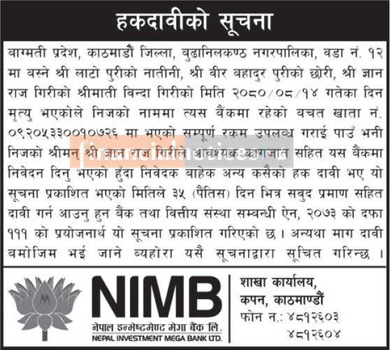 Nepal SBI Bank: Auction Notice for Non-Banking Assets at Geta-2, Kailali