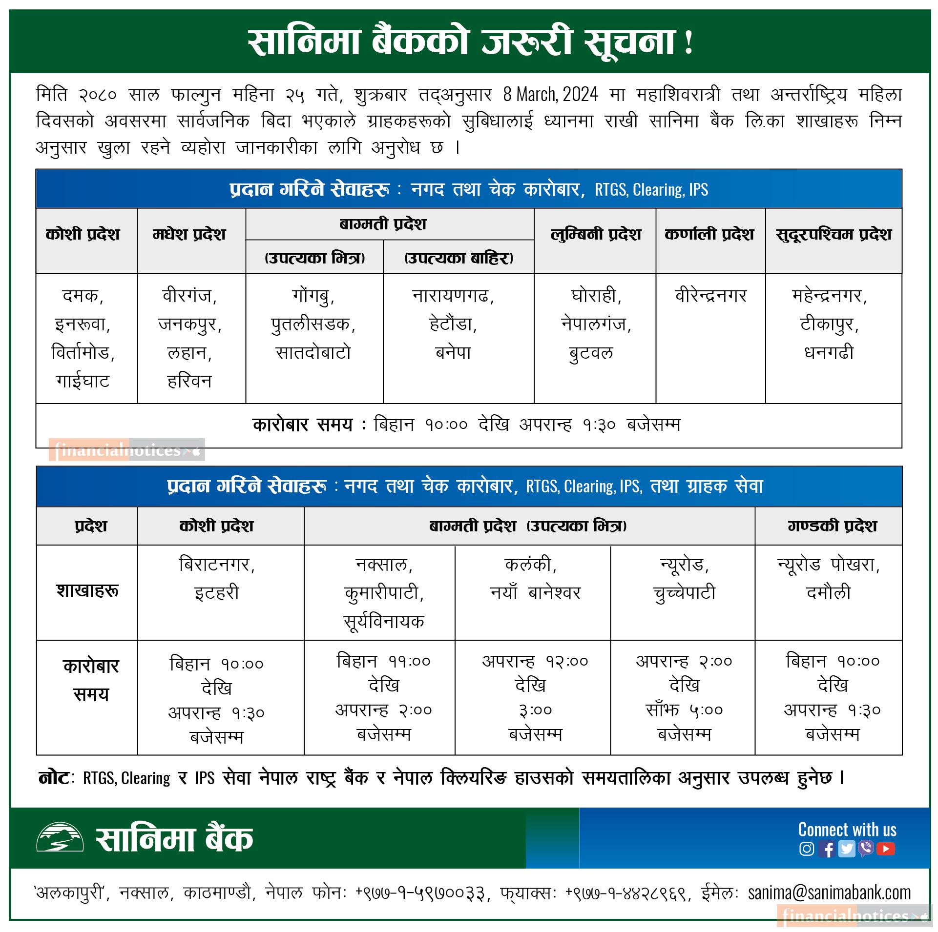 सानिमा बैंकको अत्यन्त जरुरी सूचना