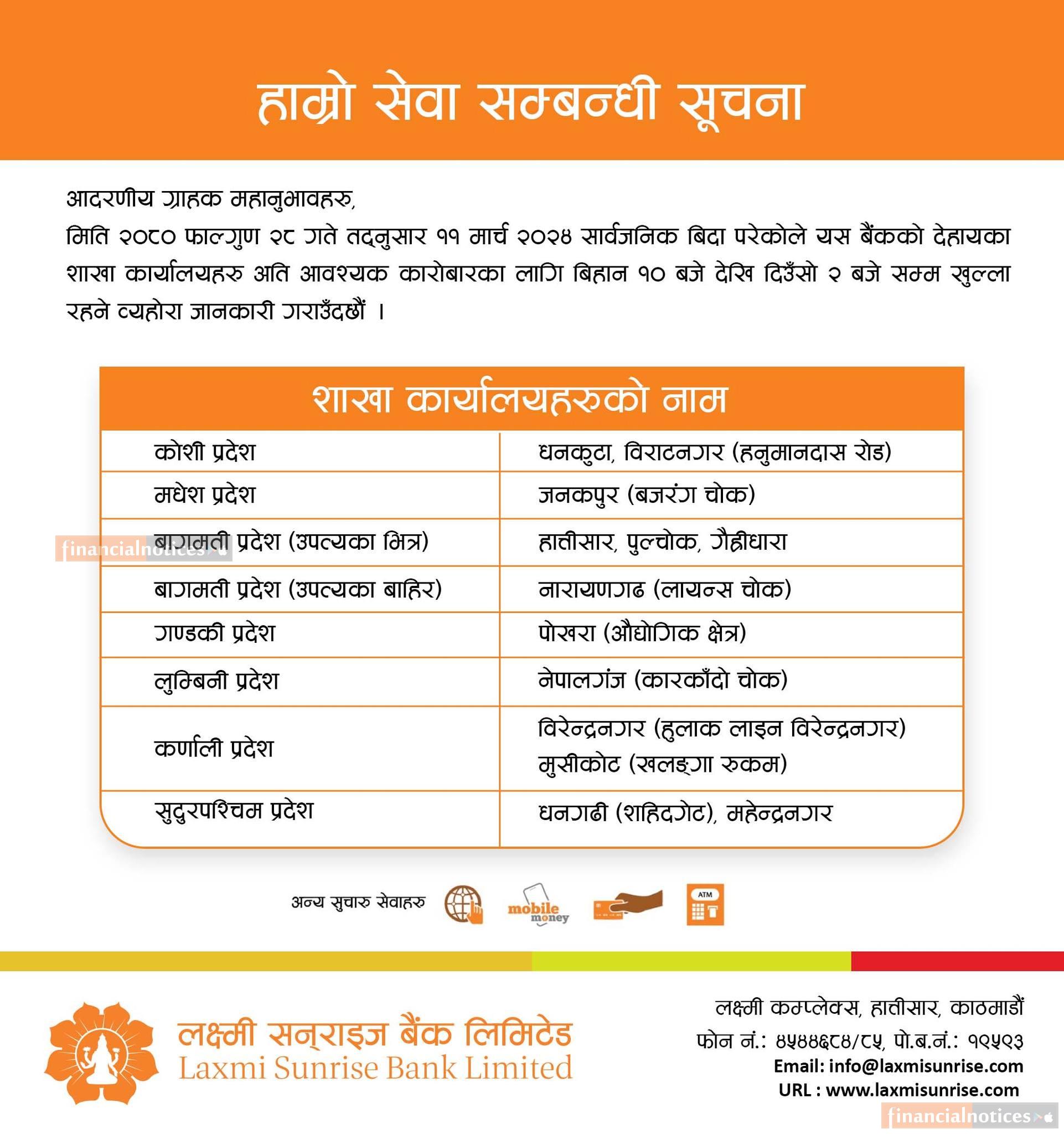 Published by Laxmi Sunrise Bank on 2080-11-27
