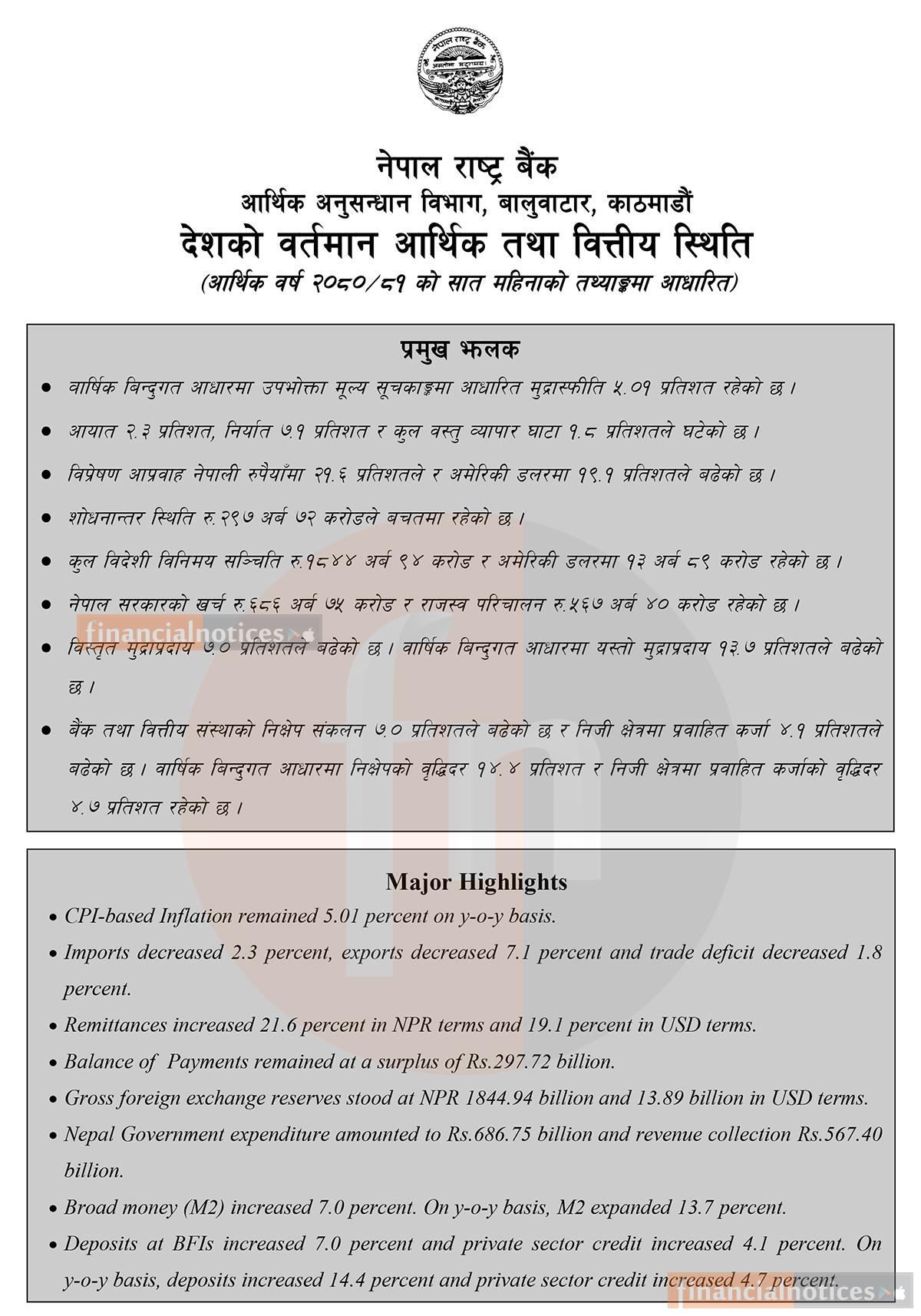 देशको वर्तमान आर्थिक तथा वित्तीय स्थिति (आर्थिक वर्ष २०८०/८१ को सात महिनाको तथ्याङ्कमा आधारित)