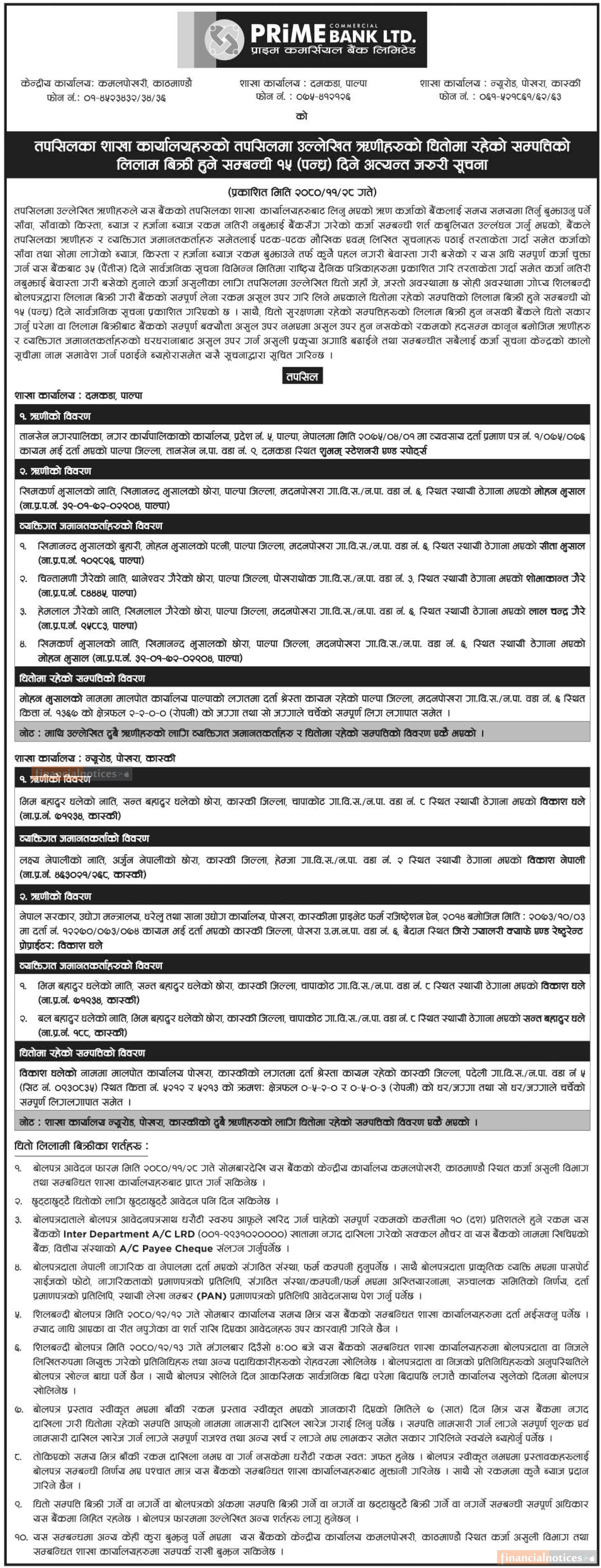 धितोमा रहेको सम्पत्ति लिलाम बिक्री हुने सम्बन्धी १५ दिने सूचना