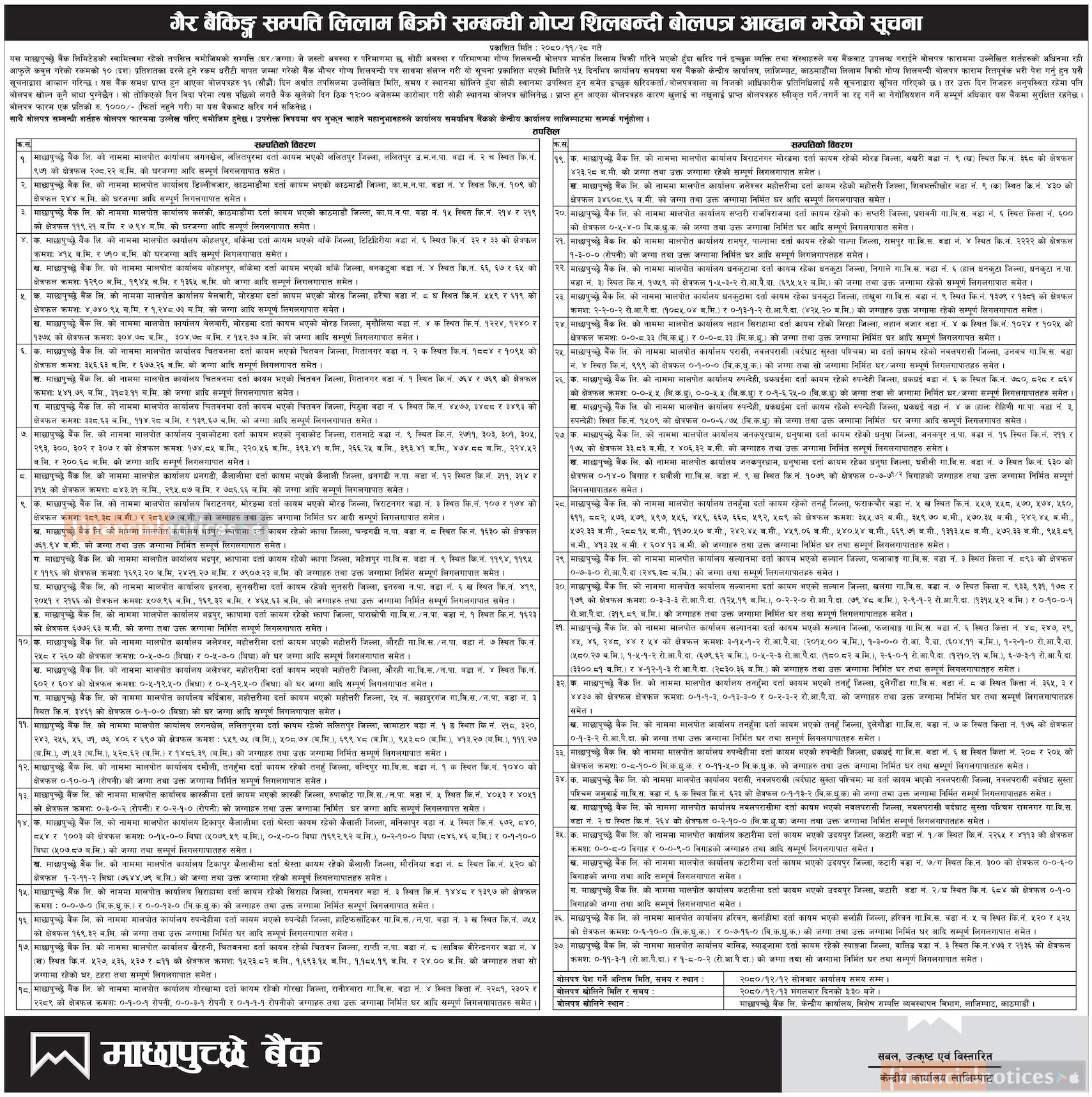 Kumari Bank Auction Notice for Non-Banking Assets at Mahendranagar, Kanchanpur -