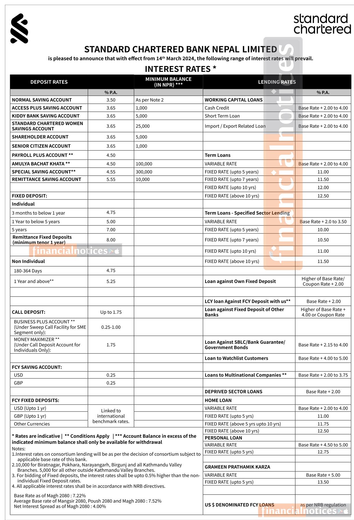 स्ट्याण्डर्ड चार्टर्ड बैंकको नयाँ ब्याजदर सार्वजानिक, कुन खातामा कति पुग्यो ? - Interest Rates -