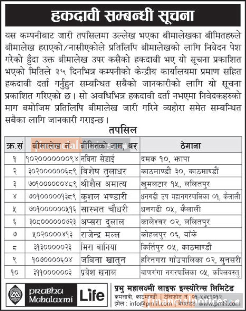 Published by Prabhu Mahalaxmi Life Insurance on 2080-12-01