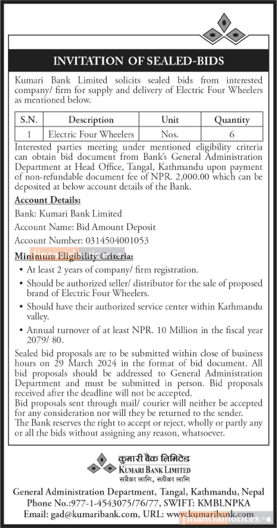 Published by Kumari Bank Ltd (KBL) on 2080-12-02