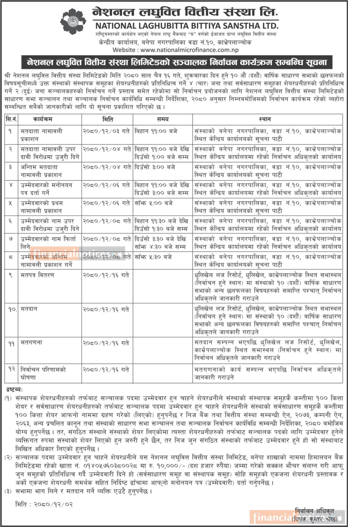 नेशनल लघुवित्तको संचालक निर्वाचन कार्यक्रम सम्बन्धी सूचना
