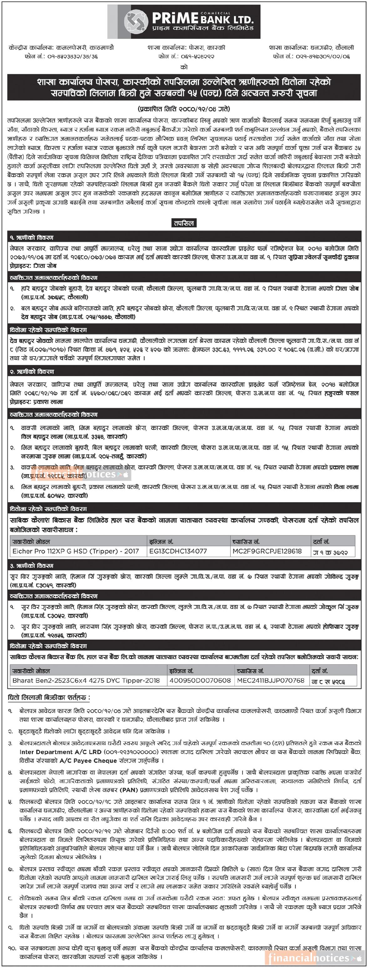 ऋणीहरुको धितोमा रहेको सम्पत्ति लिलाम बिक्री हुने सम्बन्धी १५ दिने अत्यन्त जरुरी सूचना