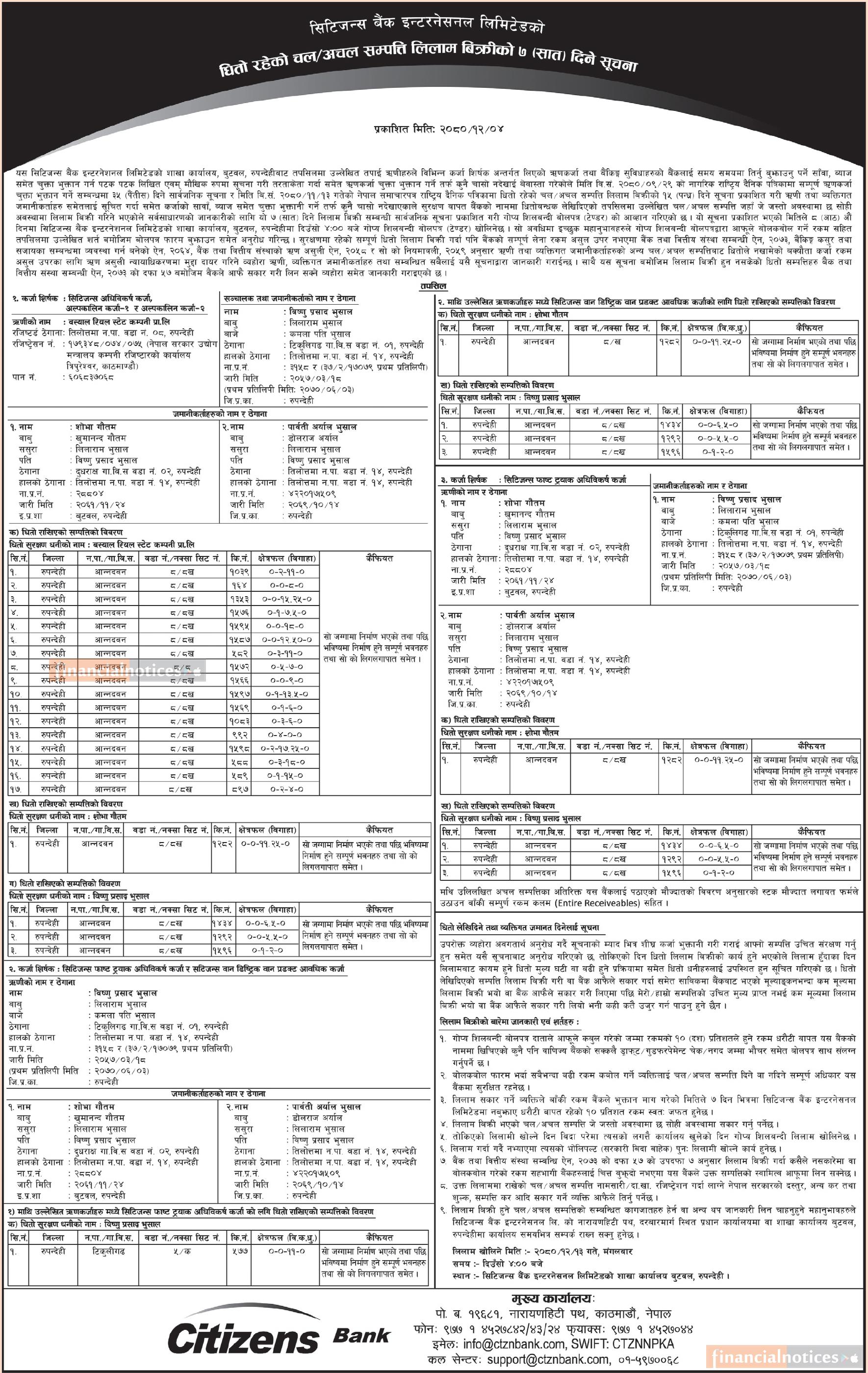 सिटिजन्स बैंकको धितोमा रहेको चल अचल सम्पत्ति लिलाम बिक्री सम्बन्धी ७ दिने सूचना