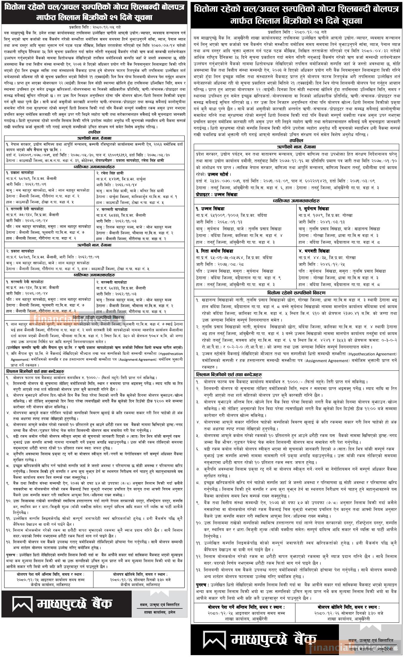 Kumari Bank Auction Notice for Non-Banking Assets at Mahendranagar, Kanchanpur -