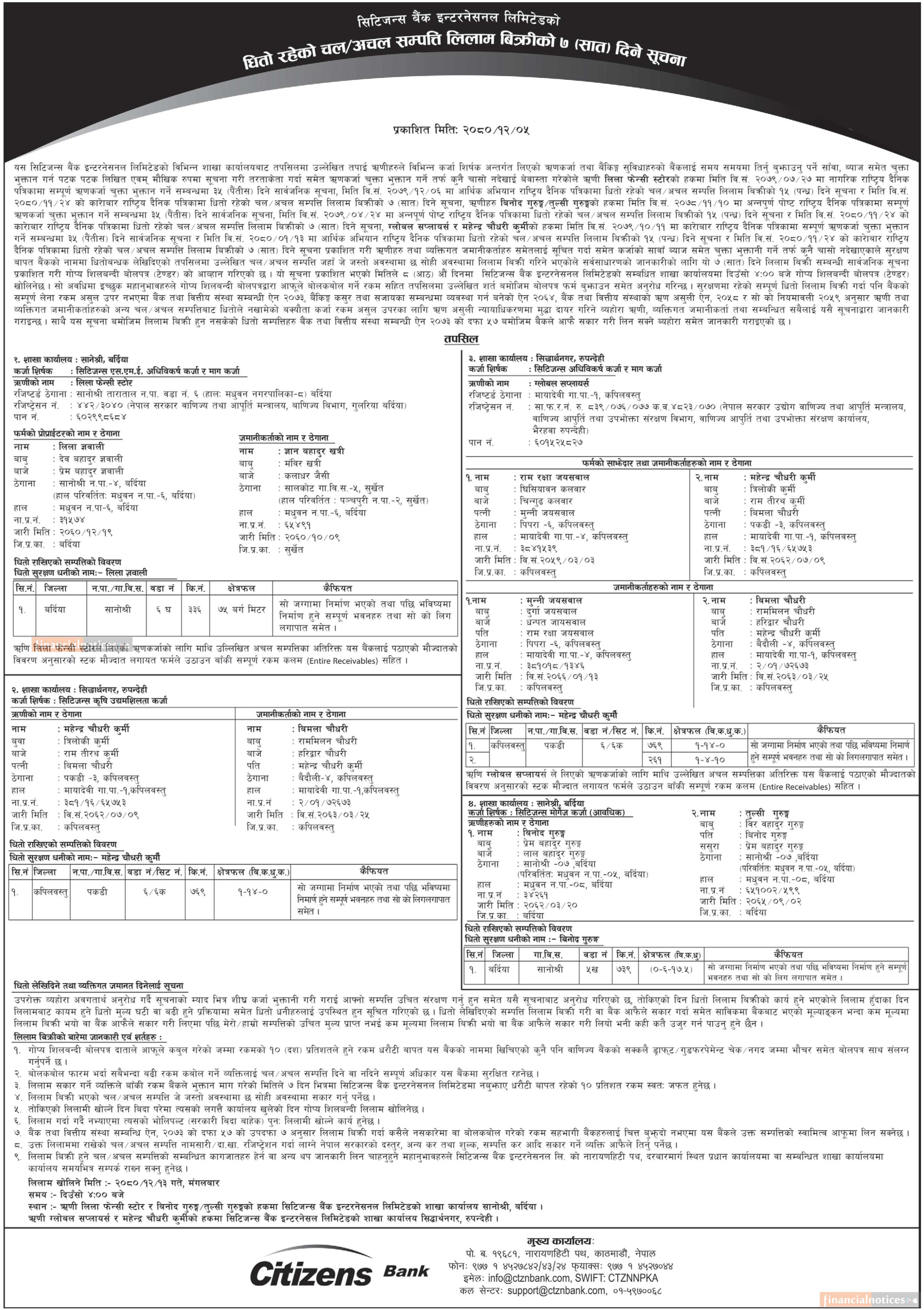 धितोमा रहेको चल/अचल सम्पत्ति लिलाम बिक्री गर्न गोप्य शिलबन्दी बोलपत्र आव्हान सम्बन्धी २१ दिने सूचना