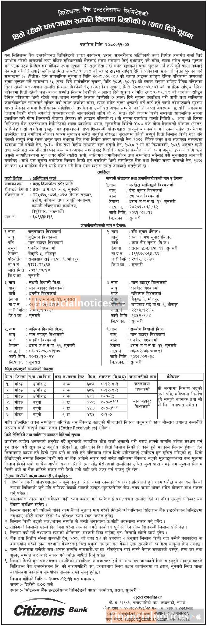 धितोमा रहेको चल अचल सम्पत्ति लिलाम बिक्रीको ७ दिने सूचना