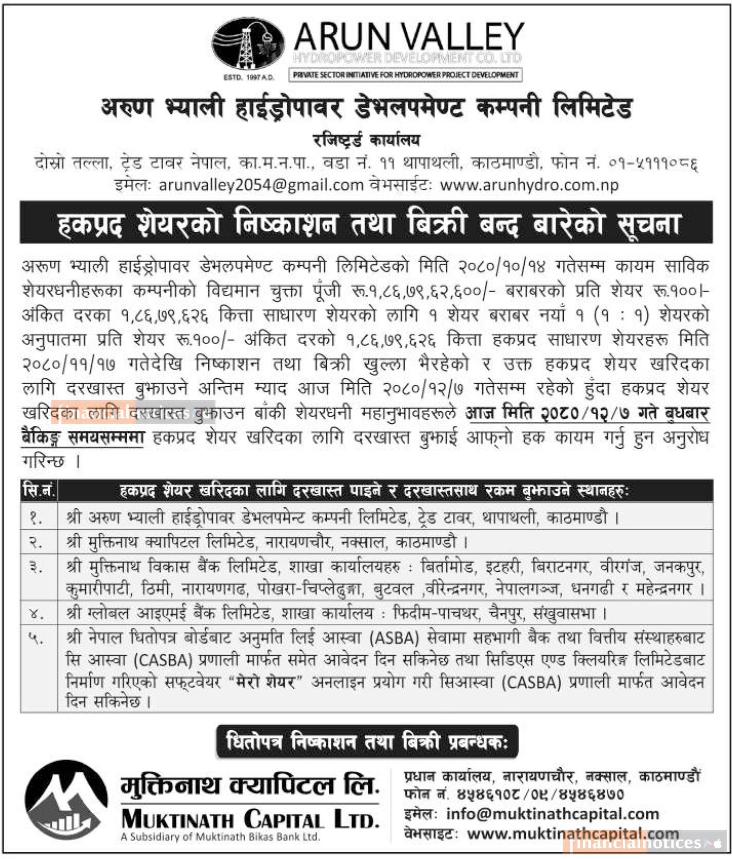 अरुण भ्याली हाइड्रोको हकप्रदमा आवेदन दिने आज अन्तिम दिन सम्बन्धी सूचना
