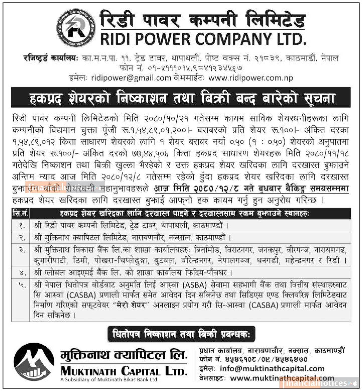 हकप्रद शेयरको निष्काशन तथा बिक्री बन्दबारेको सूचना -