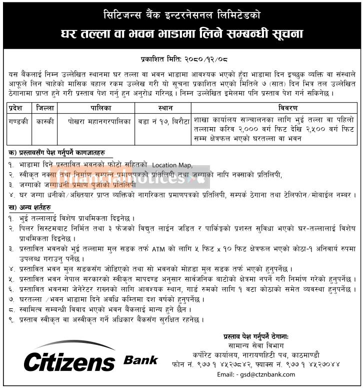 घर तल्ला वा भवन भाडामा लिने सम्बन्धी सूचना