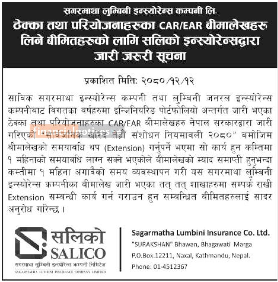 Published by Sagarmatha Lumbini Insurance (SALICO) on 2080-12-12