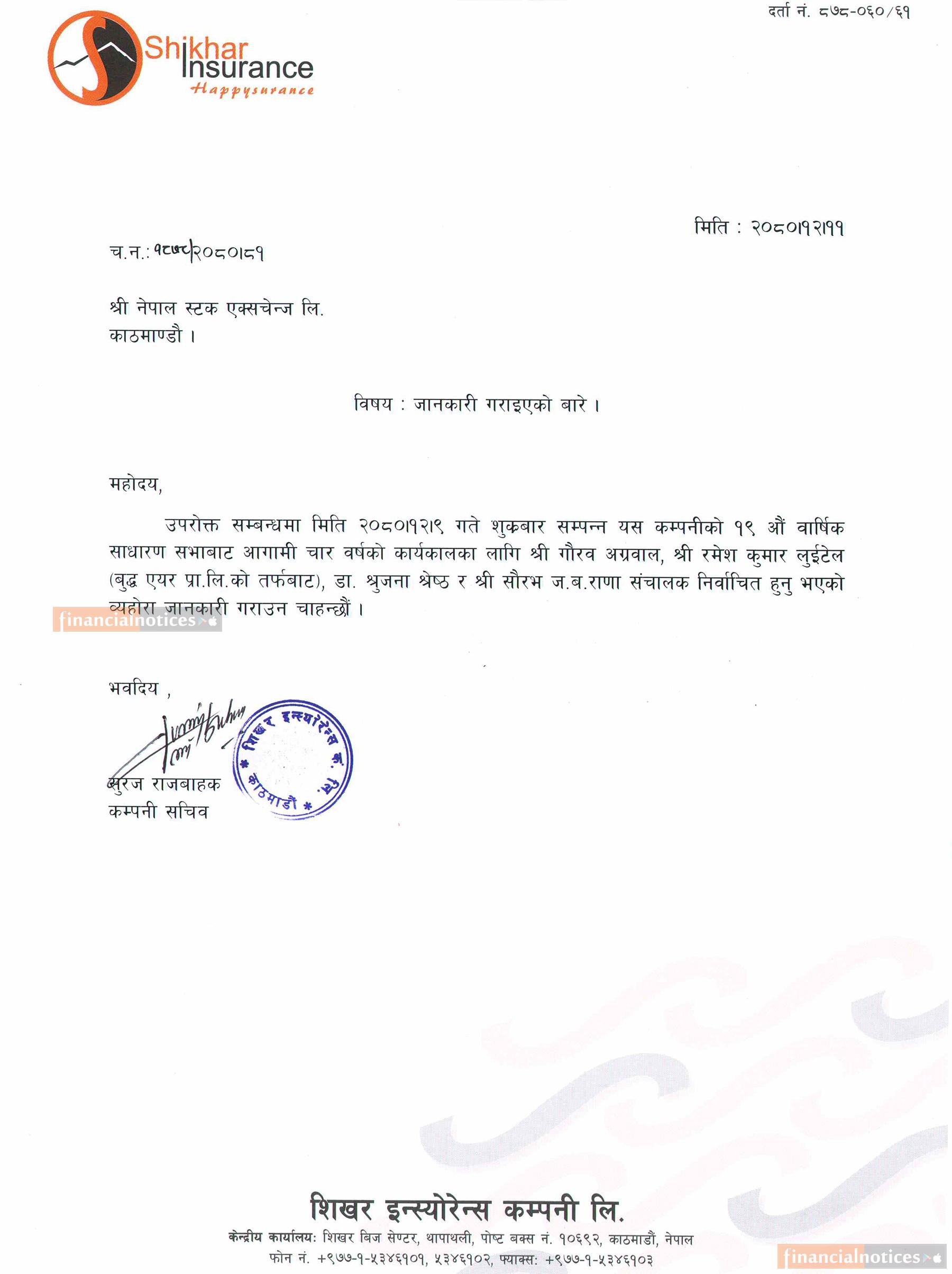 शिखर इन्स्योरेन्सको सञ्चालक निर्वाचित सम्बन्धी सूचना