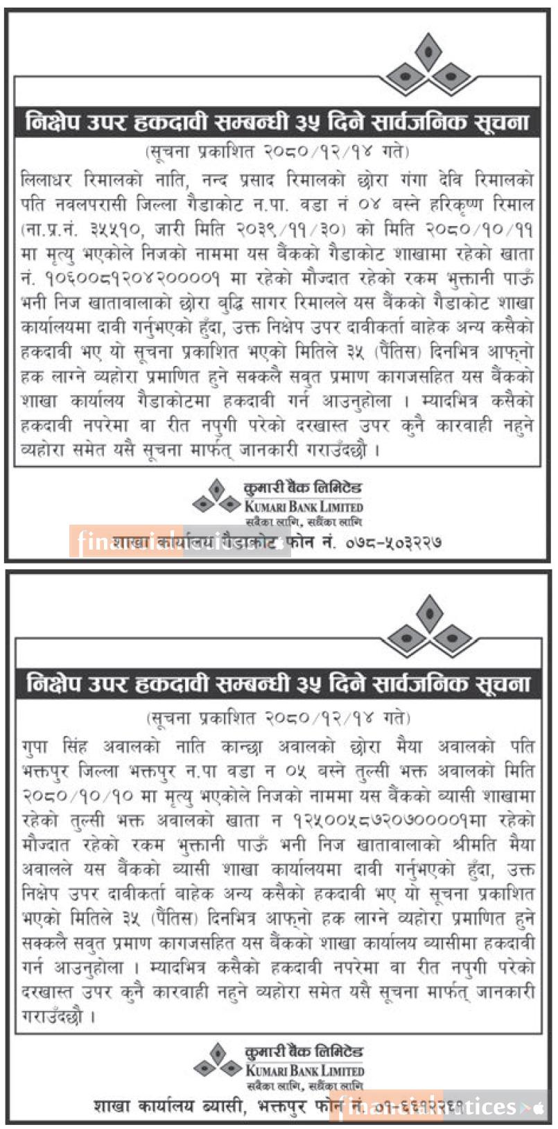 Published by Kumari Bank Ltd (KBL) on 2080-12-14