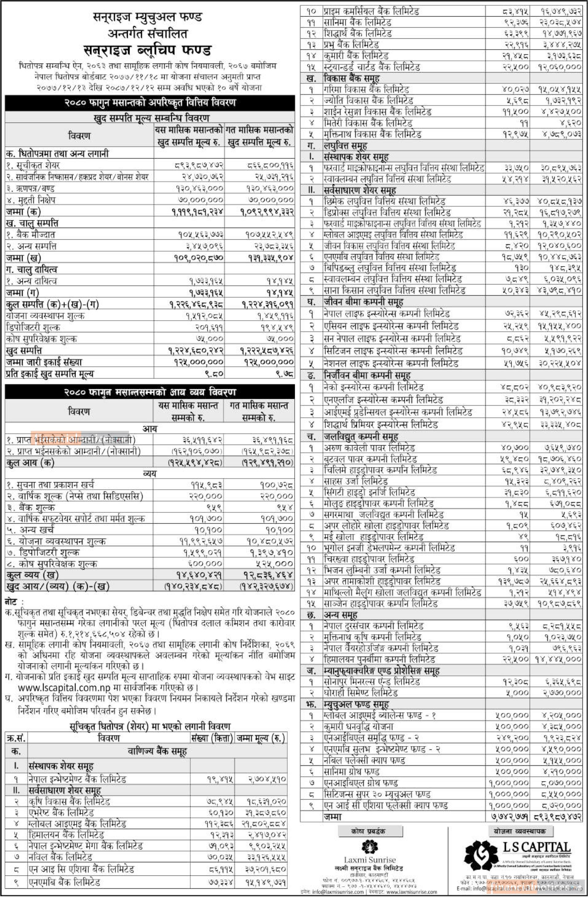 LS Capital has published Sunrise Bluechip Fund Net Asset Value till Falgun, 2080