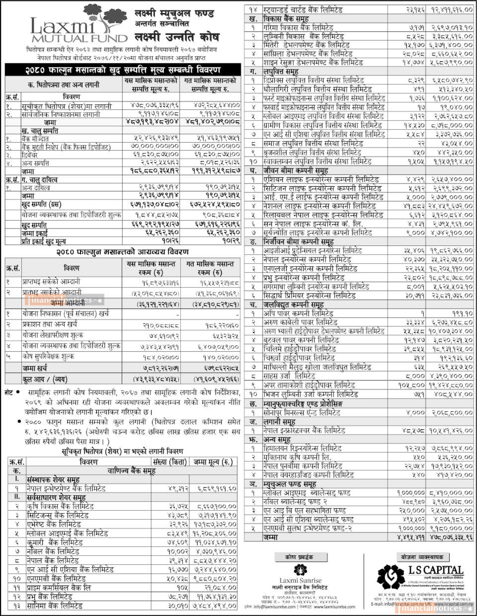 LS Capital has published the Laxmi Unnati Kosh Net Asset Value till Falgun, 2080