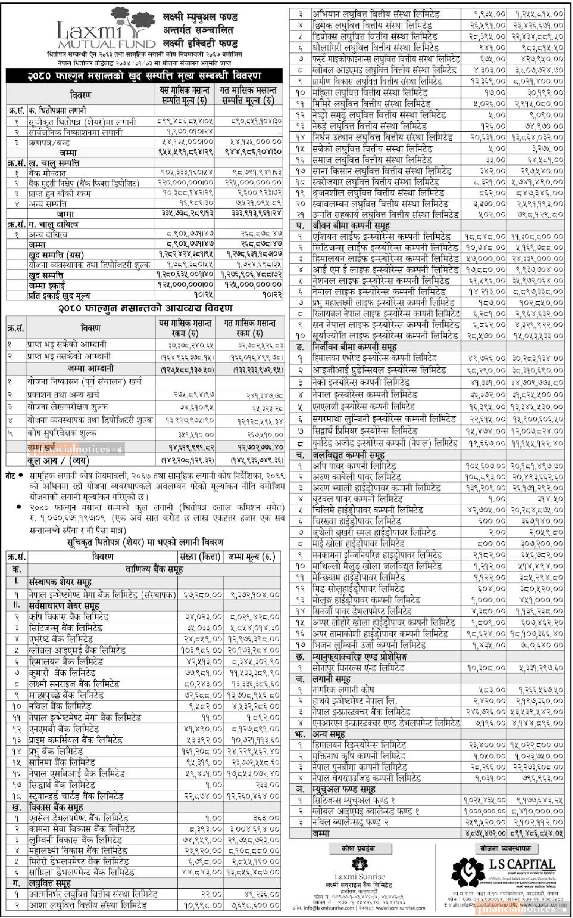 LS Capital has published the Laxmi Equity Fund Net Asset Value till Falgun, 2080