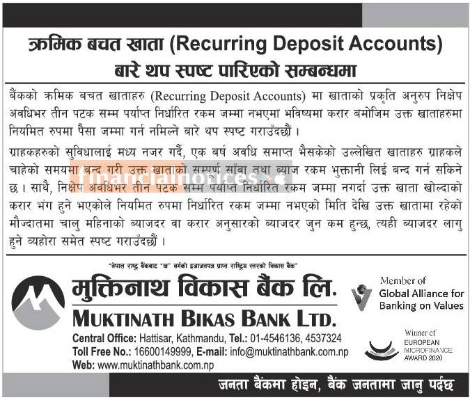 मुक्तिनाथ विकास बैंकको अत्यन्त जरुरी सूचना
