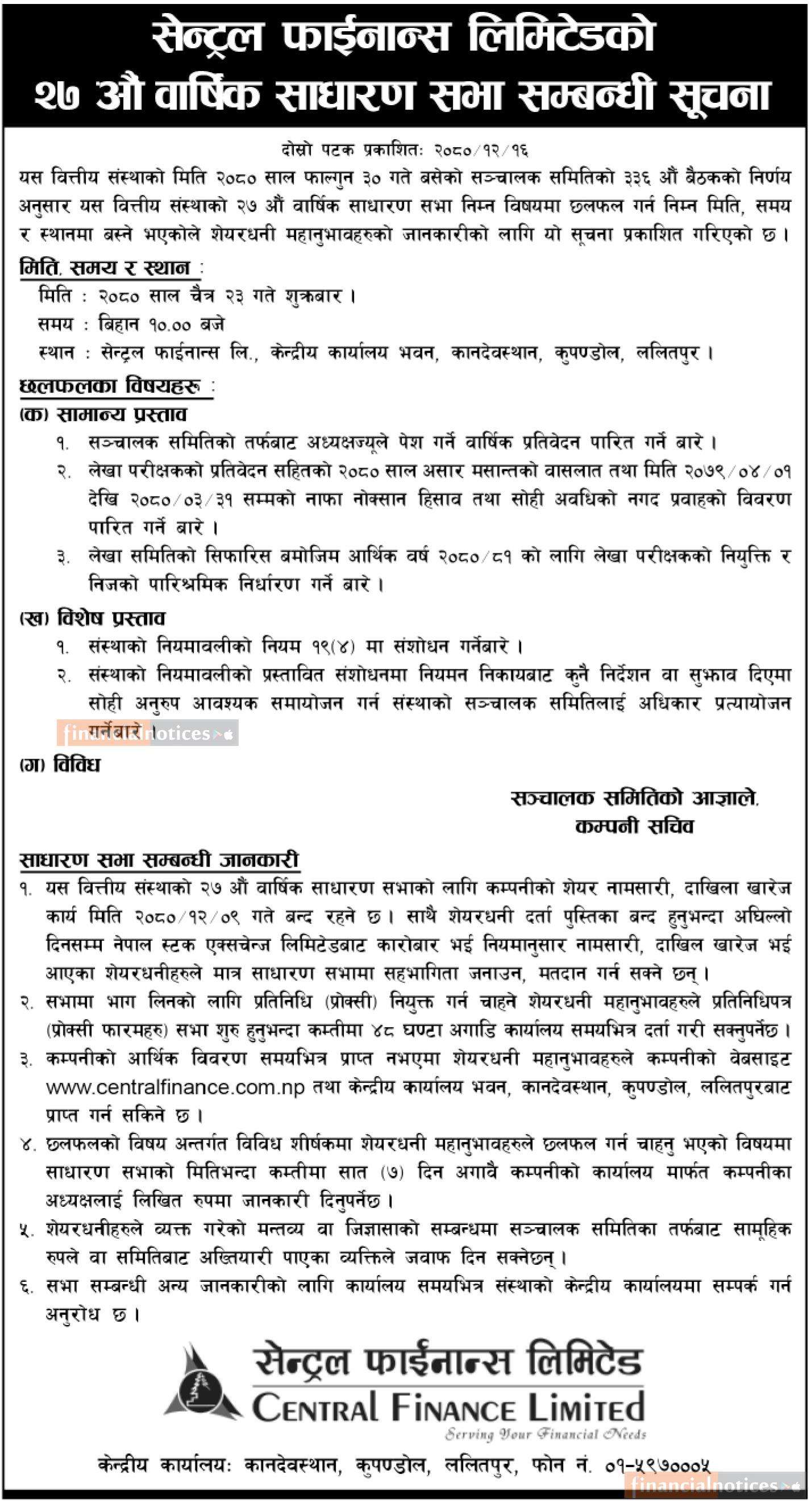 २७औँ वार्षिक साधारण सभा सम्बन्धी सूचना