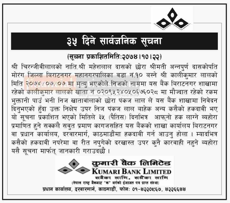 Published by Kumari Bank Ltd (KBL) Aarthik Abhiyan Newspaper on 2074-10-22