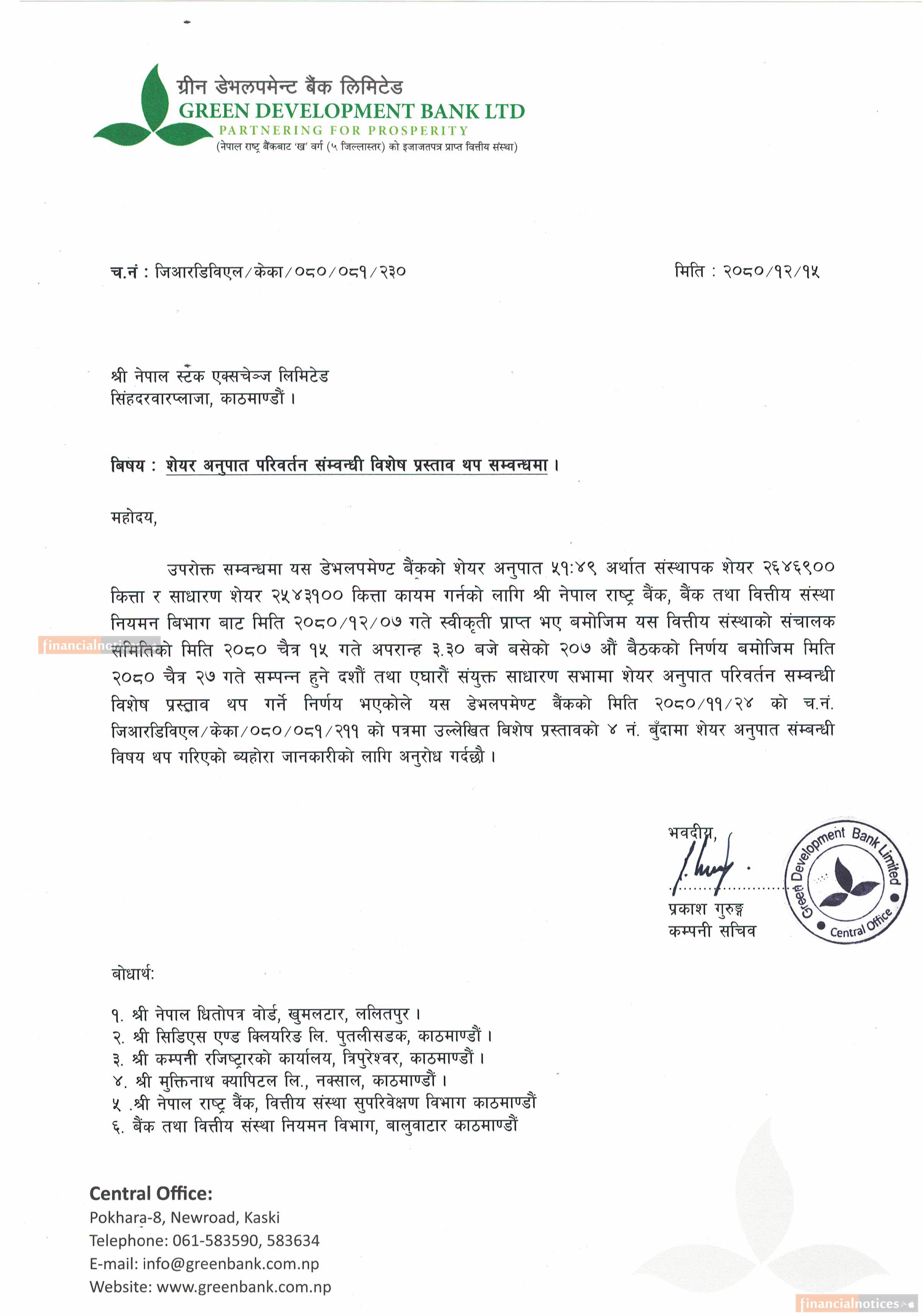 ग्रीन डेभलपमेन्ट बैंकले शेयर संचरना परिवर्तन गर्ने बारे सूचना