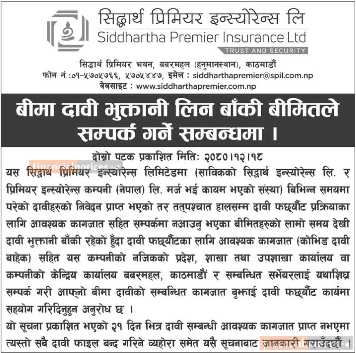 Published by Siddhartha Insurance Company Limited (SIL) on 2080-12-18