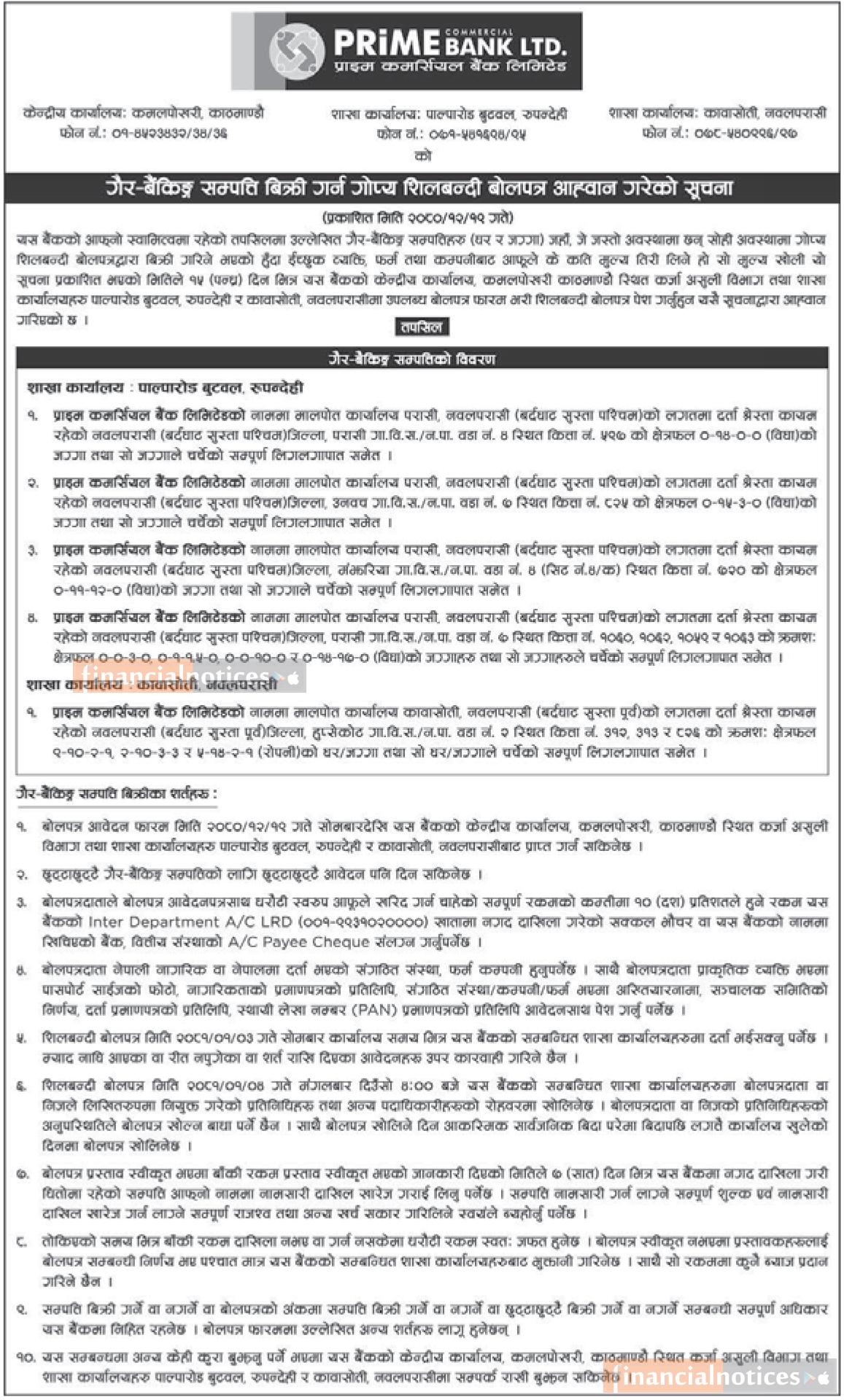 गैह्र बैंकिङ्ग सम्पत्ति बिक्री गर्न लागि गोप्य शिलबन्दी बोलपत्र आव्हानको सूचना